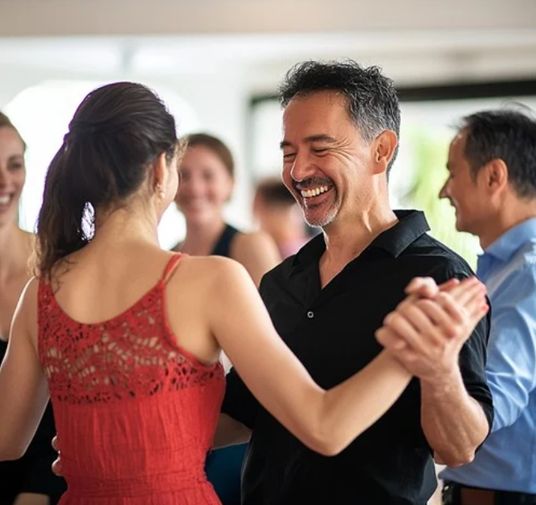 Dancers of all levels and styles have fun sharing their knowledge and joy of dancing to a diverse mix of classics and modern music in swing, Latin and ballroom music.
